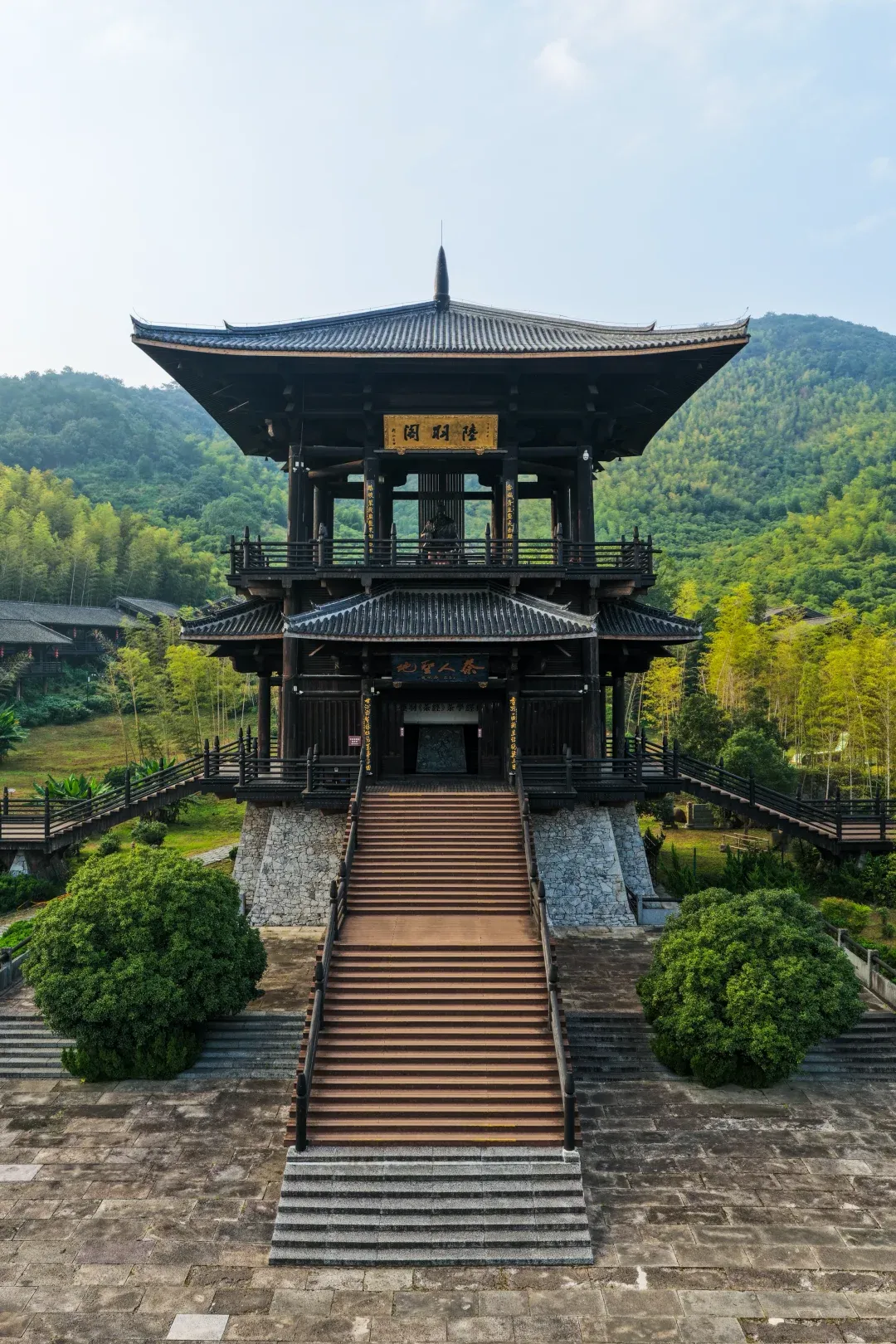 「大唐贡茶院」📍 地址:长兴县顾渚山 🚗 交通:出站后打车约30分钟 💰 门票:约70元 ⏰ 建议时长:2-3小时 ⭐ 评价:陆羽写《茶经》的地方。 春节的江南山里湿气重,但这里有炭火炉。 整个建筑是仿唐制的,极其宏大且空旷。在回廊下找个位置,煮一壶当地的紫笋茶(唐代贡茶)。 听着竹林里的风声,你会明白为什么古人要躲进山里。