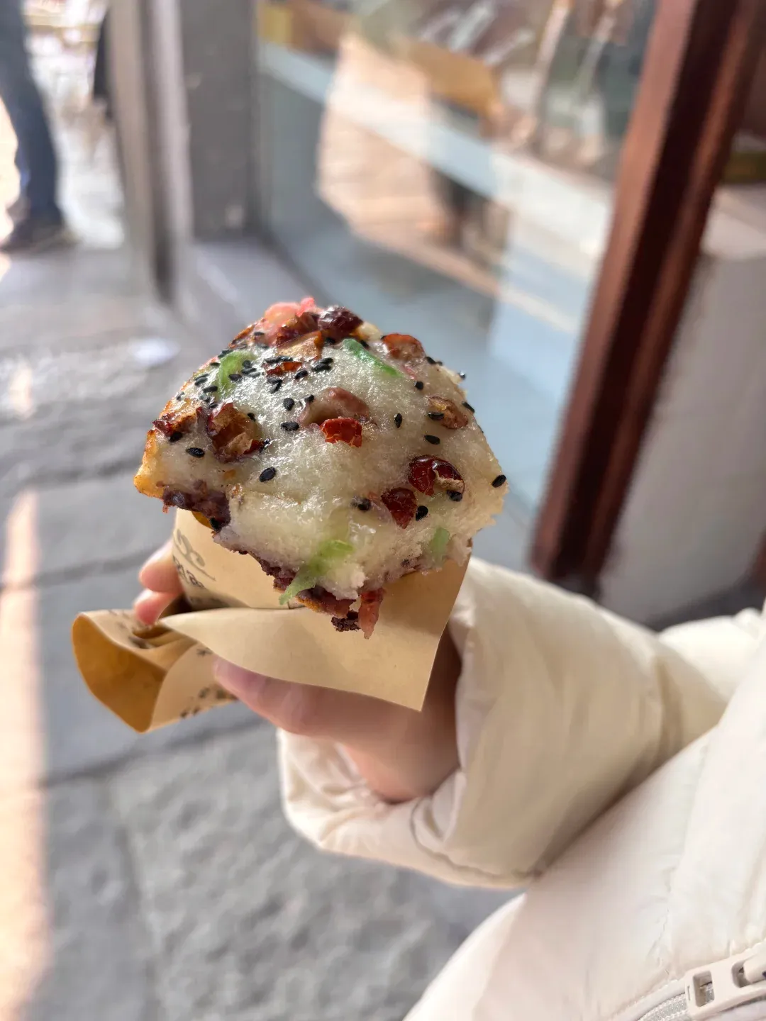 「衣裳街」📍 地址:就在铁佛寺附近 ⭐ 评价:虽然是商业街,但这是本地人也会逛的地方。 一定要去吃「周生记」的馄饨和鸡爪,还有「丁莲芳」的千张包子(一种用豆腐皮包肉的粉丝汤,味道很神奇)。