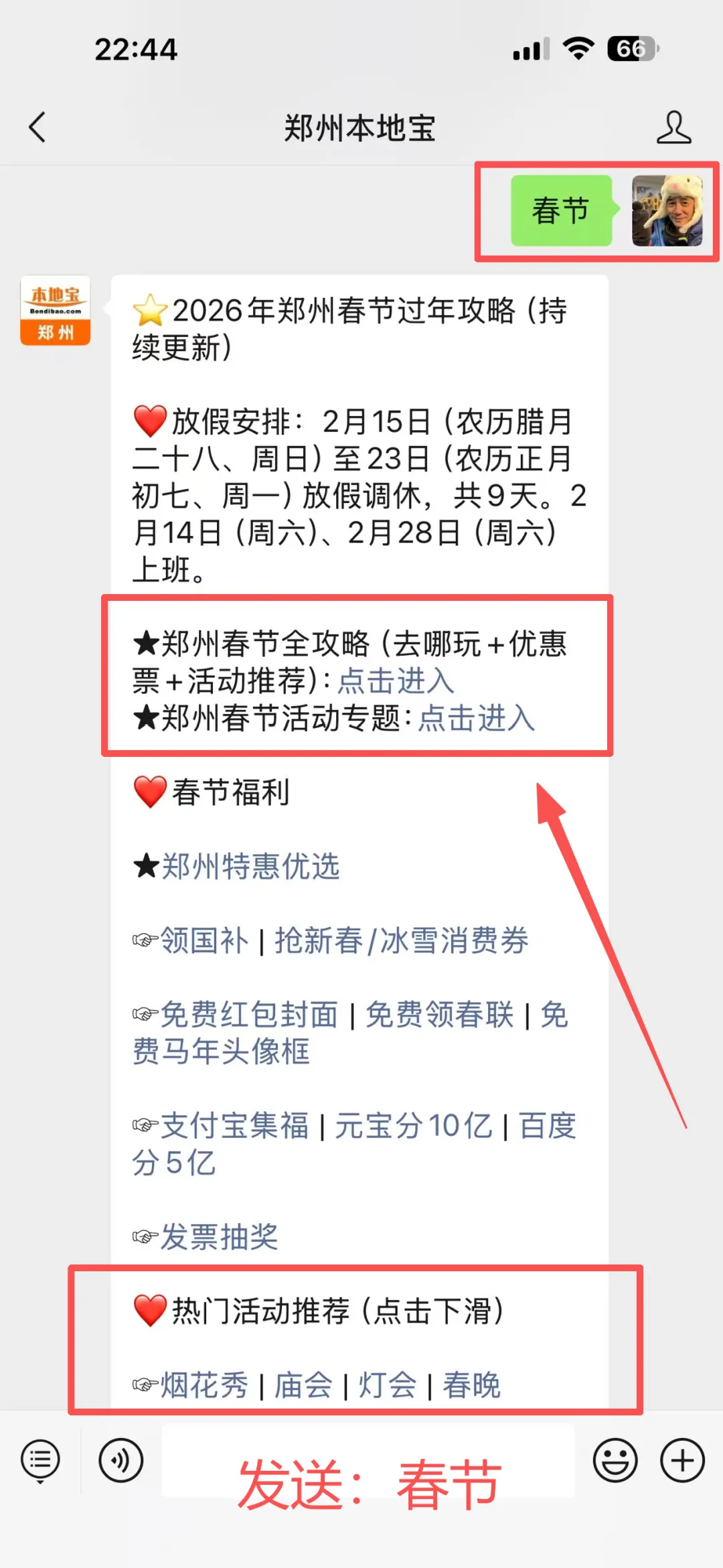 在聊天对话框发送【春节】