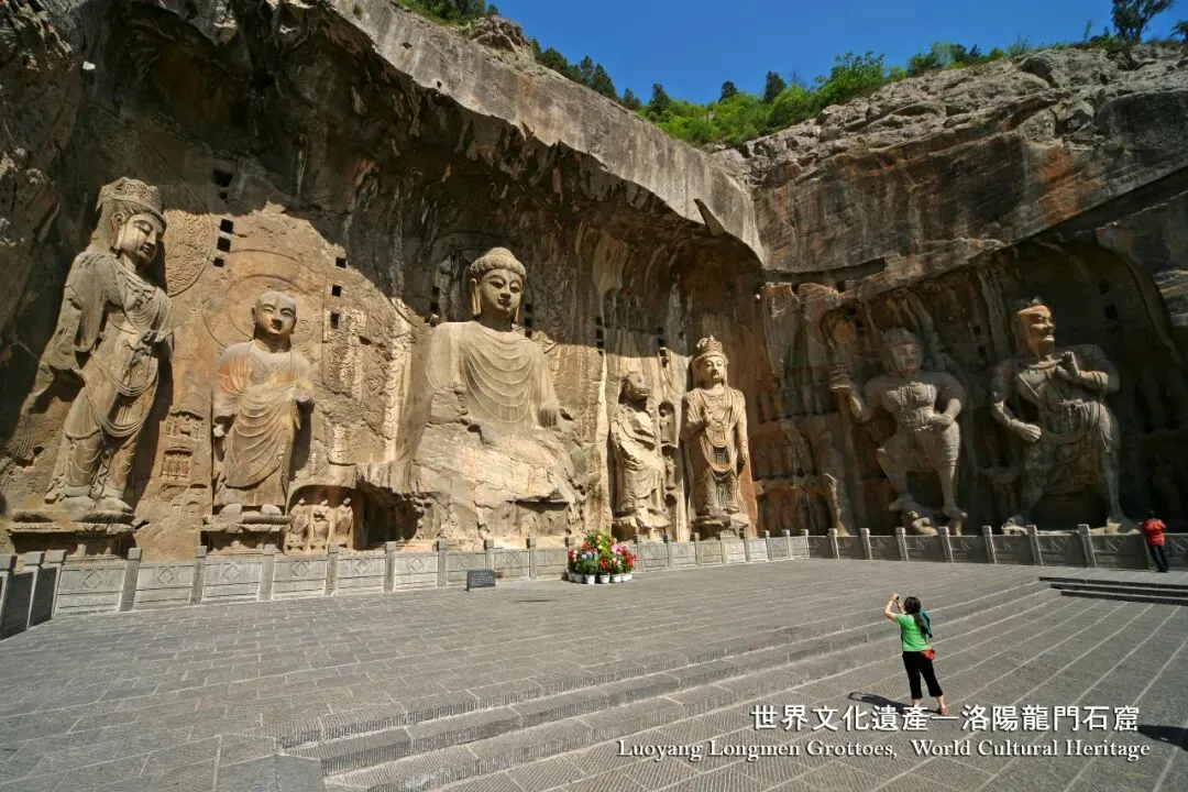 「龍門石窟(りゅうもんせっくつ)」は北魏の孝文帝が山西省の大同から洛陽に遷都した494年ごろから製作が始まります。石窟や石がんは2100以上大小約10万体の仏像が安置され3600以上の碑刻題記があり、そのうち約3割が北魏、約7割が唐時代に造営されたもの。」