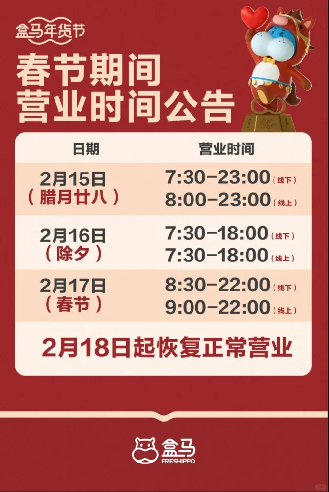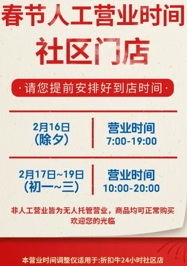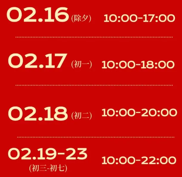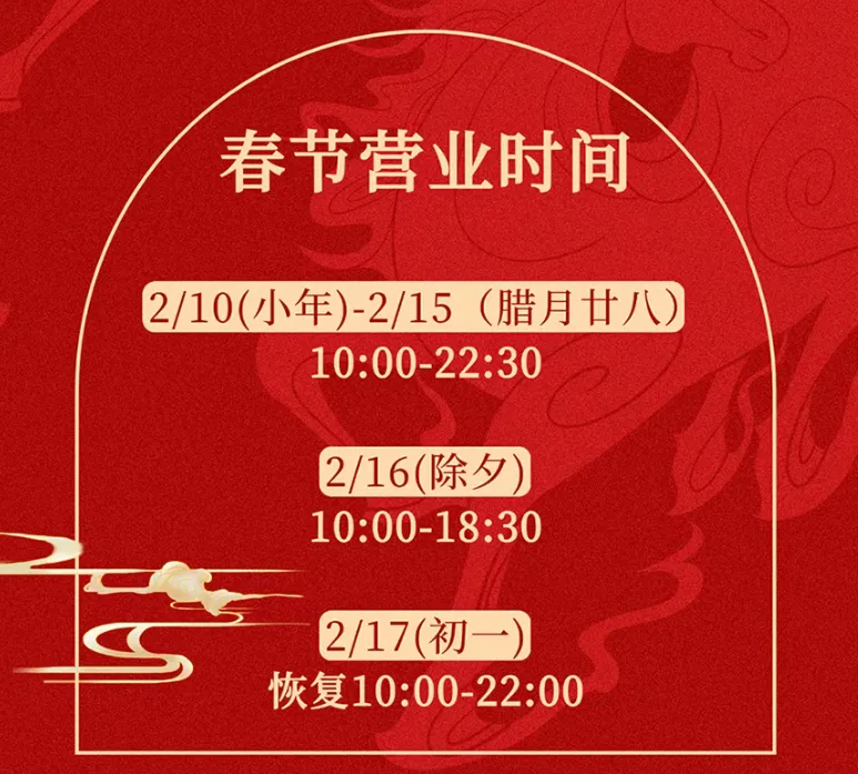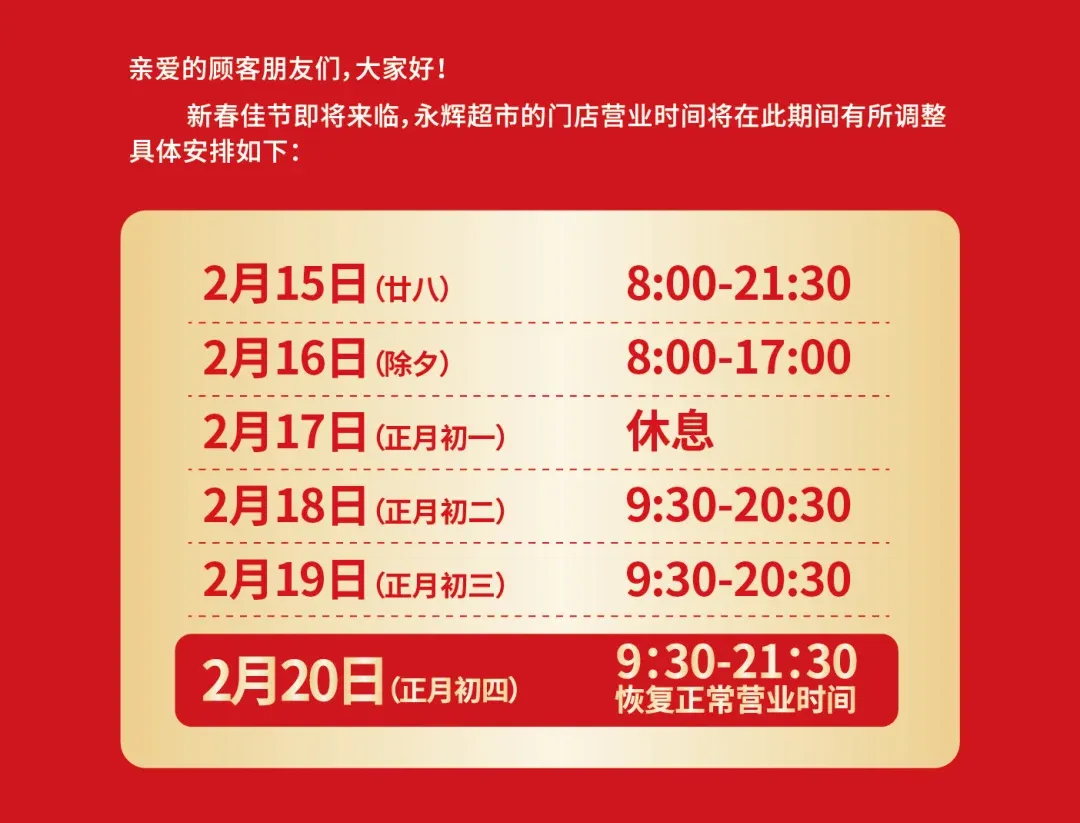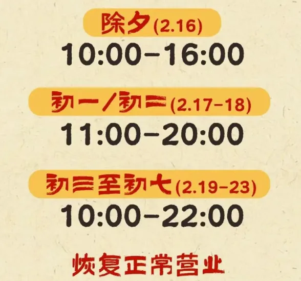 2月16日(除夕)-2月20日(初四)营业