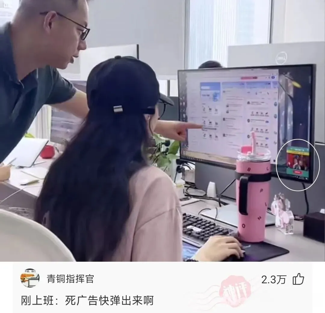 真是个人才,只需要把电视剧伪装成广告,就可以在上班时光明正大的追剧了~