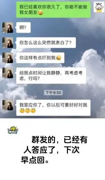 图片神回复:群发的,已经有人答应了,下次早点回。....................................................................................................