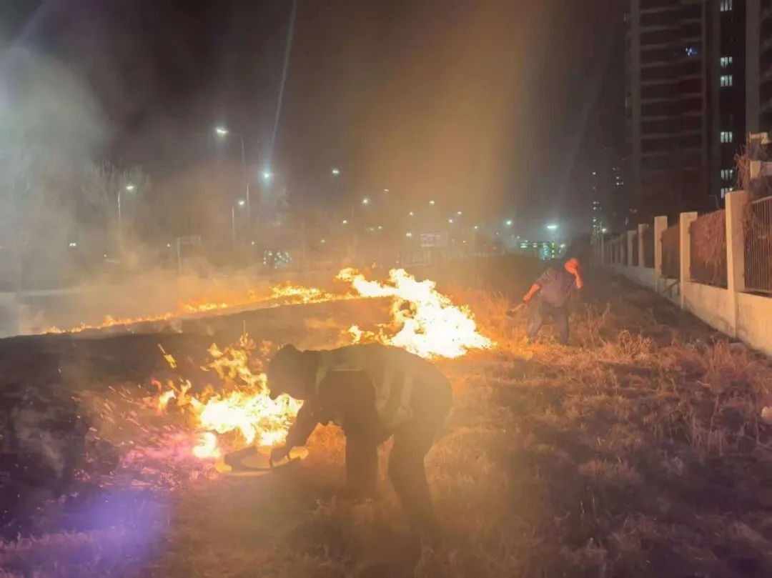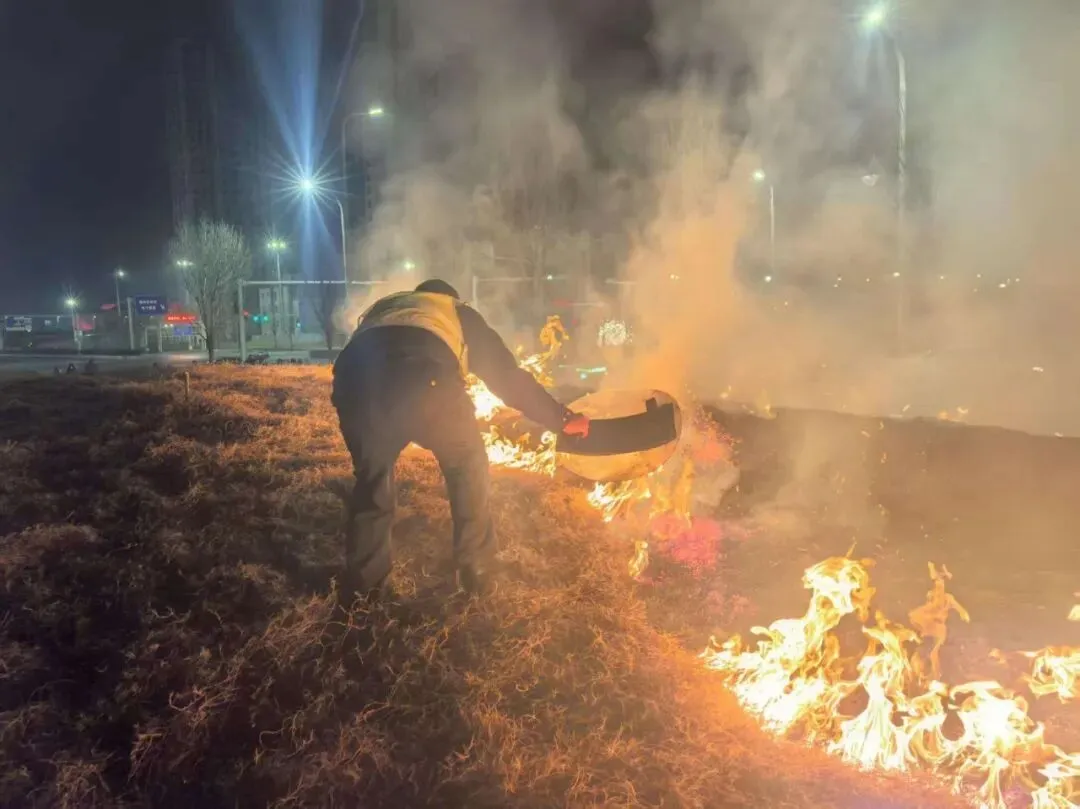 2月16日除夕夜,莲湖派出所民警王超在巡逻至莲湖地铁口时,发现路边草坪起火,随即带领辅警郭泳君与现场群众一同快速将火扑灭。