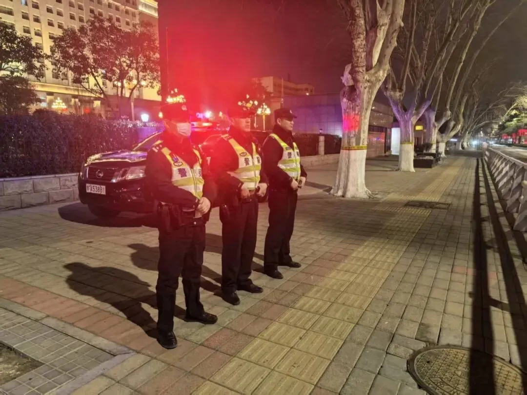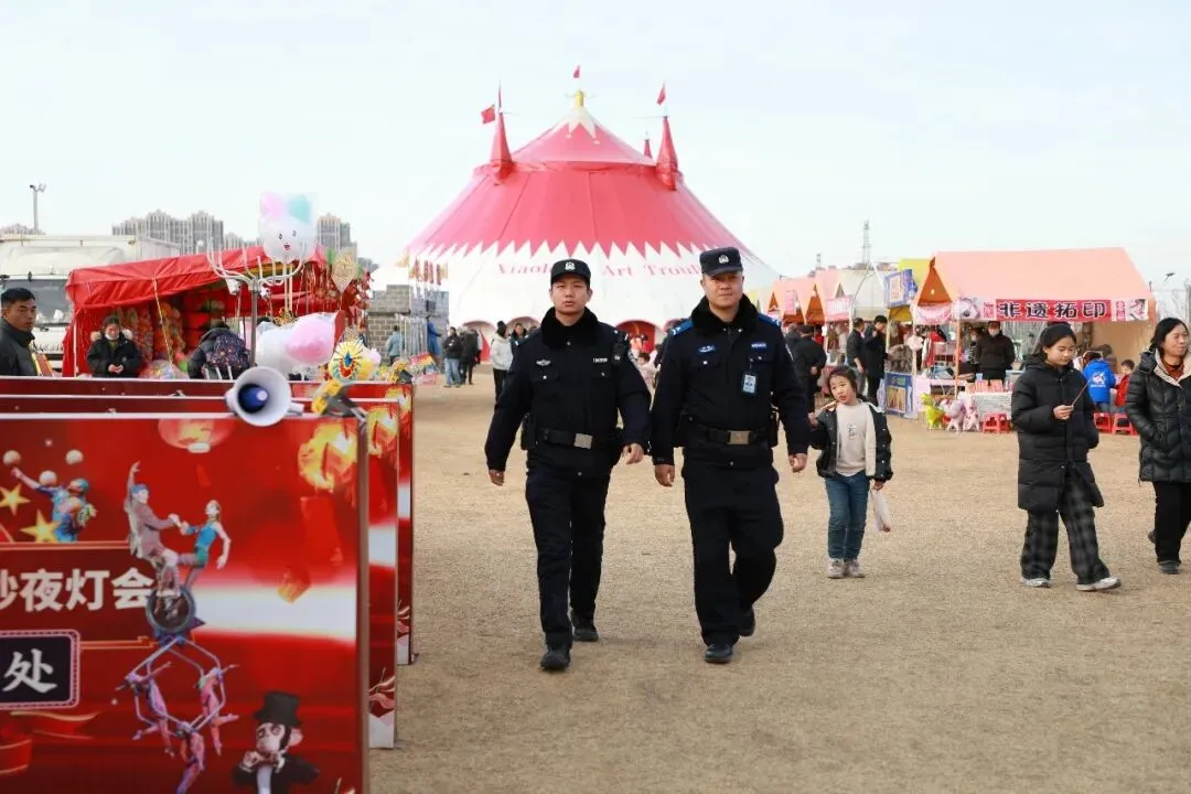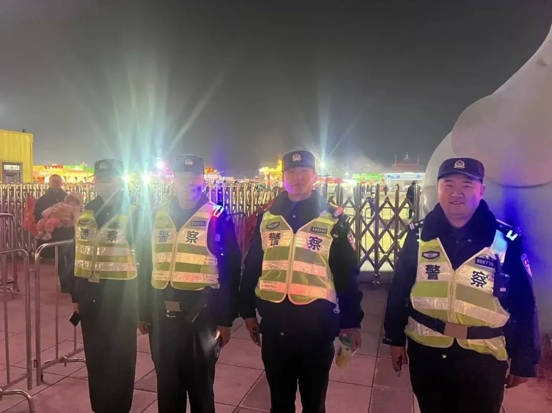 春节期间,西流湖派出所民辅警在辖区灯会开展巡逻工作。