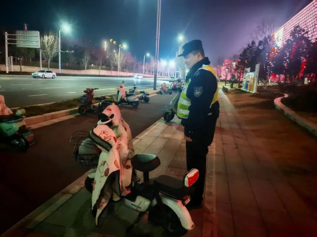 春节期间,文化中心派出所组织民辅警在辖区集中停放电动车及易发案重点部位进行巡逻。