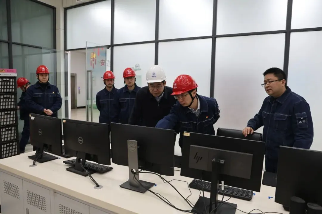 李军直奔生产现场,首先来到公司生产集控室,实地查看机组运行参数与负荷状态。随后深入设备部、质检中心、燃料及化学运行等生产区域,详细了解节日期间机组运行与燃煤保供情况,并仔细询问了火储调频辅助服务系统运行现状。每到一处,李军都与当班员工亲切交谈,对大家的辛勤坚守致以新春的问候。