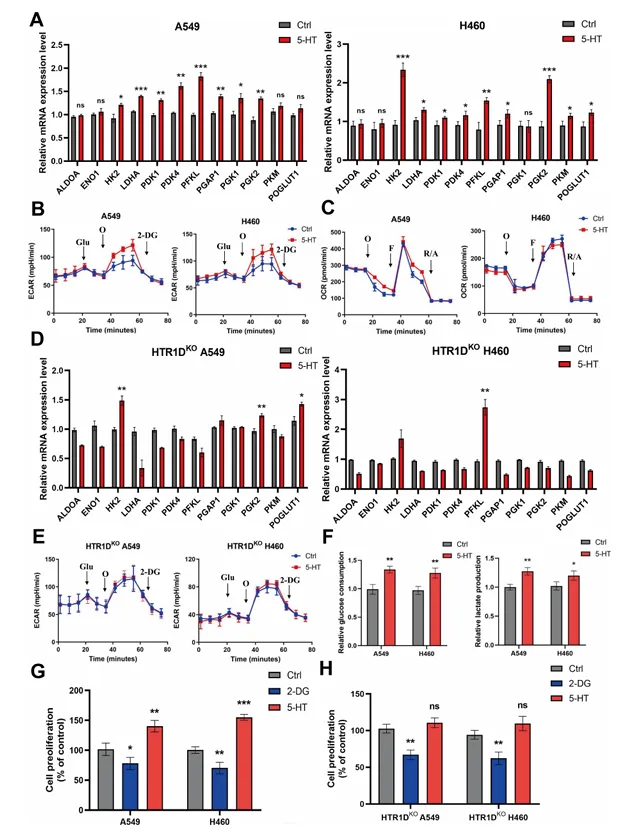 图5 5-HT通过增强沃堡效应促进NSCLC细胞的存活