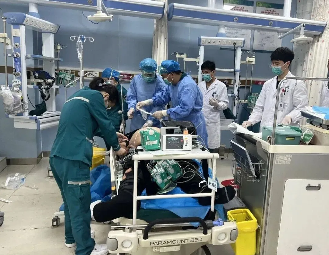 救治现场,急救人员迅速展开行动,他们将医院的专业救治前移至“移动抢救室”,为患者筑起一道坚实的生命防线。