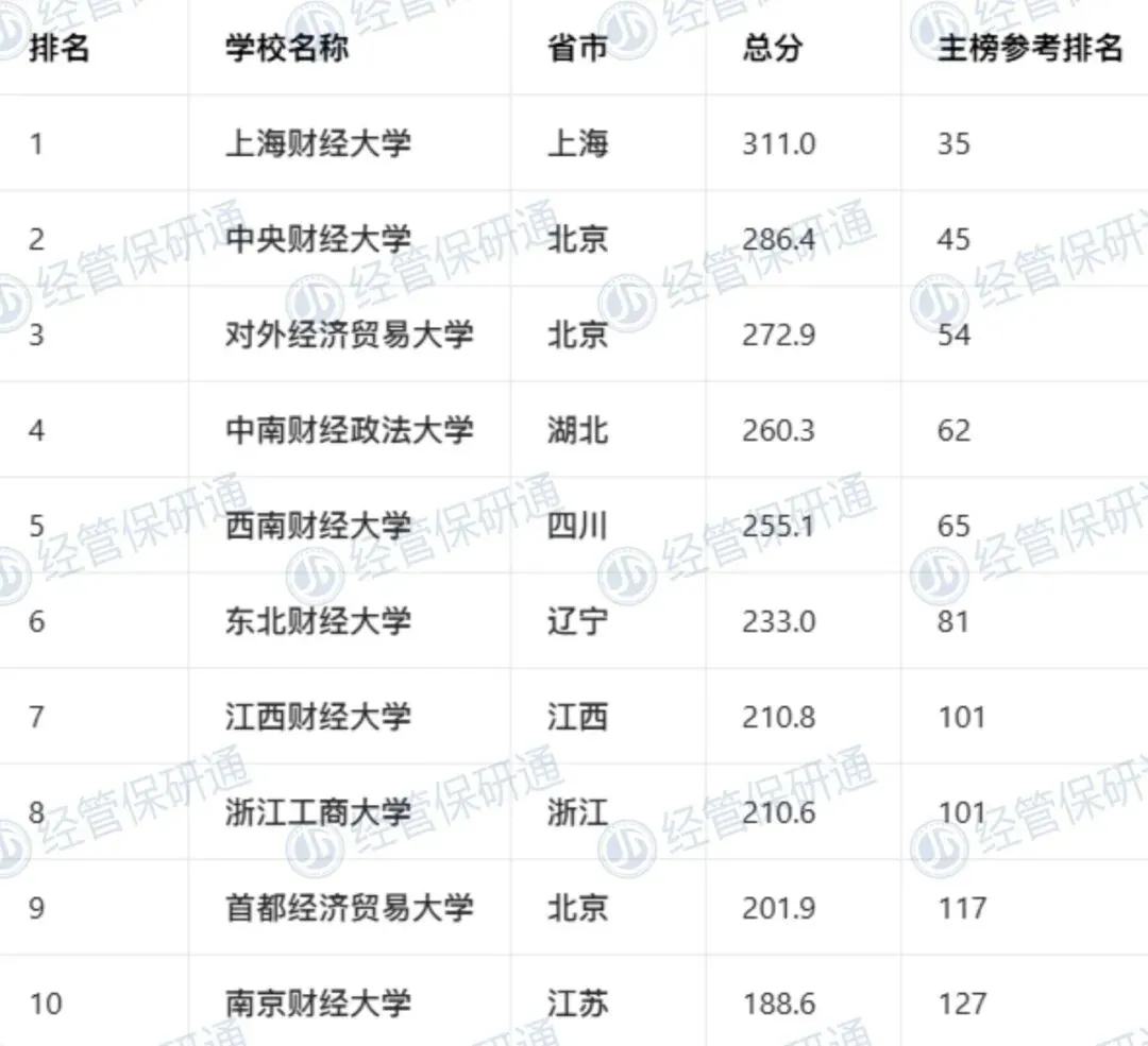 在排名来说,还可关注校友会排名,兼顾多方维度,社会声誉高的Top10 高校在自带光环,校友网络庞大,非常适合经管从业者。同时武书连排名考量人才培养成果,金平果重视科研,虽然被诟病有偏颇……但这二者可以辅助参考。