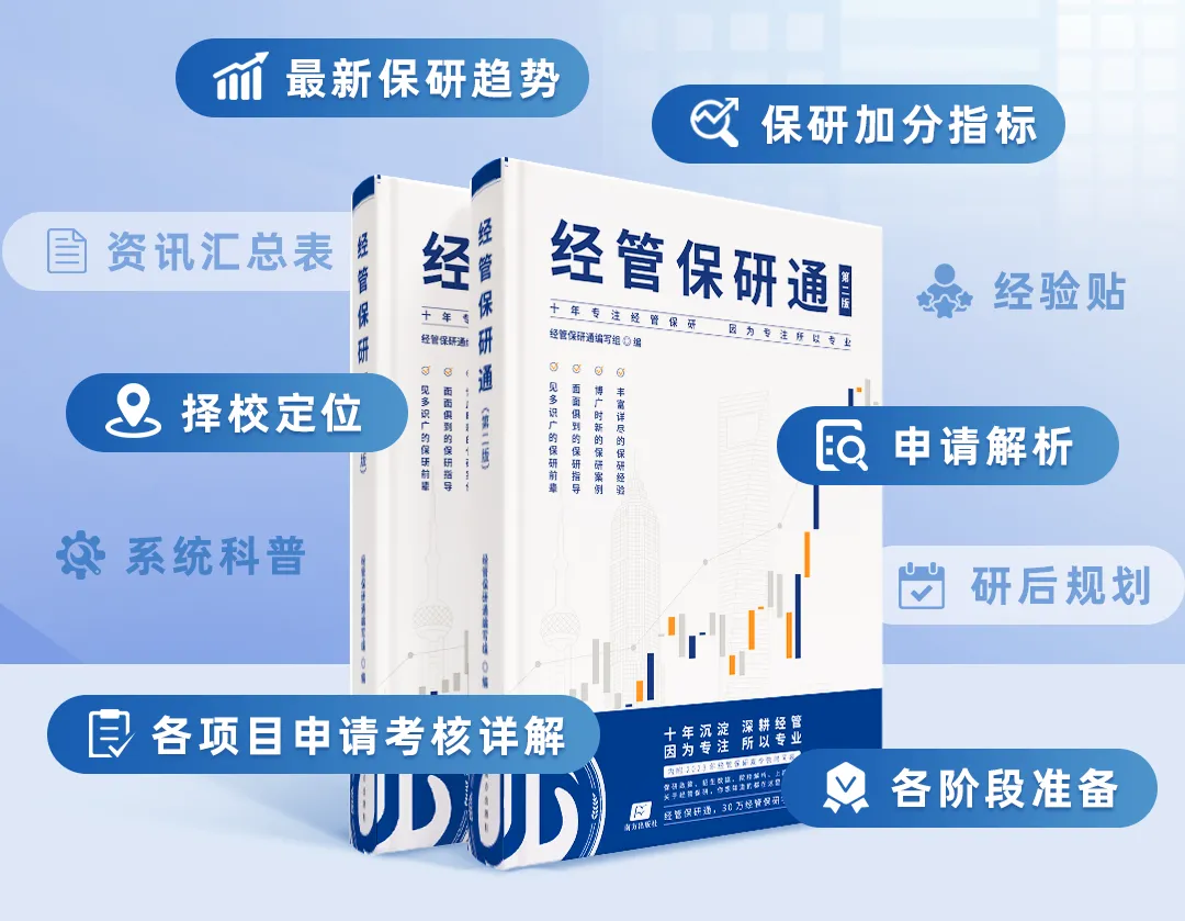 这本《经管保研通》就像是我的保研工具书,陪伴我从材料准备到上岸梦校。我本科是双非理工类高校,按照往年的学长学姐们的保研经验准备。但是,每一年的情况其实是不一样的,我今年就没有入营学长学姐的项目,当时一下乱了阵脚!