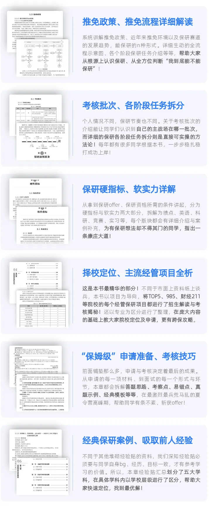 本书对我最有用的地方是,它专门打造了经管院校和专业一览的经管保研特色章节,还从上千份保研案例中精心挑选了最具有代表性的案例汇总成成功案例分享章节。
