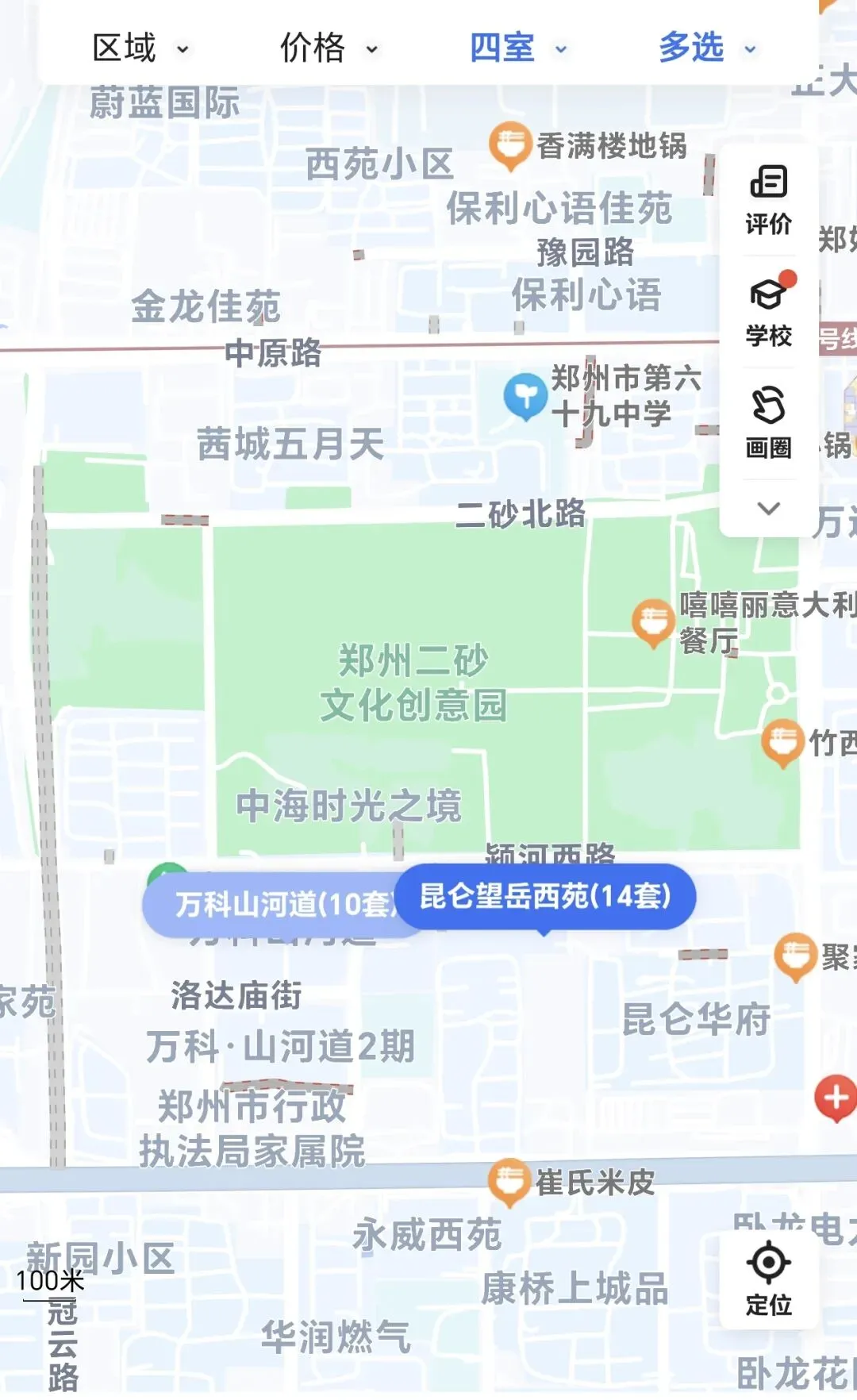 在二砂一带,符合条件的二手房小区只有山河道和傍边的昆仑望岳,在售房源也就24套。
