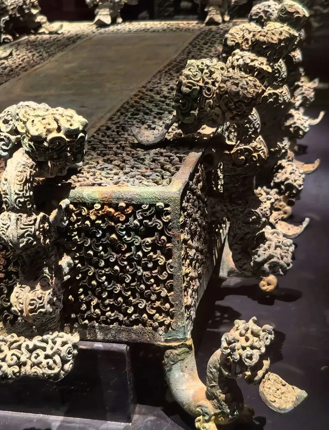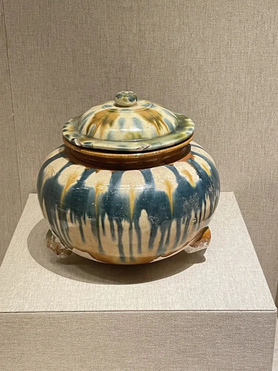 这些器型相连,或者花瓣相连的器物传达出的那个时代生活的哲理:你中有我,我中有你。 陶排水管和纵横相连的沟渠共同构成了目前国内已知最早、最为完备的城市排水系统。有智慧,也有远见! 作为夏、商、周三代的都心腹地,河南是中国青铜文明的中心舞台。当你了解青铜器的铸造过程,必然也会明白这些器物的含金量,这些器型生动,纹饰精美绝伦的青铜器要经过多么复杂繁琐的工艺,又要花费多少人力、精力才能制作出来呢! 在人类文明的进程中,为什么是先有陶器后有青铜器呢?因为铸造青铜器需要先制模、制范啊,模和范都是陶做的,陶模、陶范做的生动精美,浇筑出来的青铜器才能精美啊,你是不是想到了现在的模范一词?是的,就源于此。 这只愤怒又可爱的小鸟(妇好鴞尊),让我们认识了一位文可兴国,武可安邦的女将军、王后、母亲,商王武丁的妻子。鴞尊的后上方盖上有只小鸟和夔龙,方便拿起盖子,而另一只变形的小鸟则化身为整个酒尊的把手,太巧妙了,酒尊上的纹饰也丰富的让人赞叹,艺术性和实用性巧妙的融为一体,浑然天成,这就是商代晚期青铜器铸造水平啊!技艺高超又娴熟!4楼楚文化馆的云纹铜禁,一个摆放盛酒器的几案也要做的如此精美!看到它,你会感叹,真正的文明,不只是权力的象征,更是美的极致表达。 我个人是很爱看青铜器和陶瓷的,汝瓷的雅致,钧瓷的绚烂,哥瓷的金丝铁线都让人着迷,而流光四溢的唐三彩更会让你对那个绚烂璀璨的大唐盛世充满遐想…… 河南博物院逛下来确实是有种“豫”览华夏之文明的感觉!不虚此行!