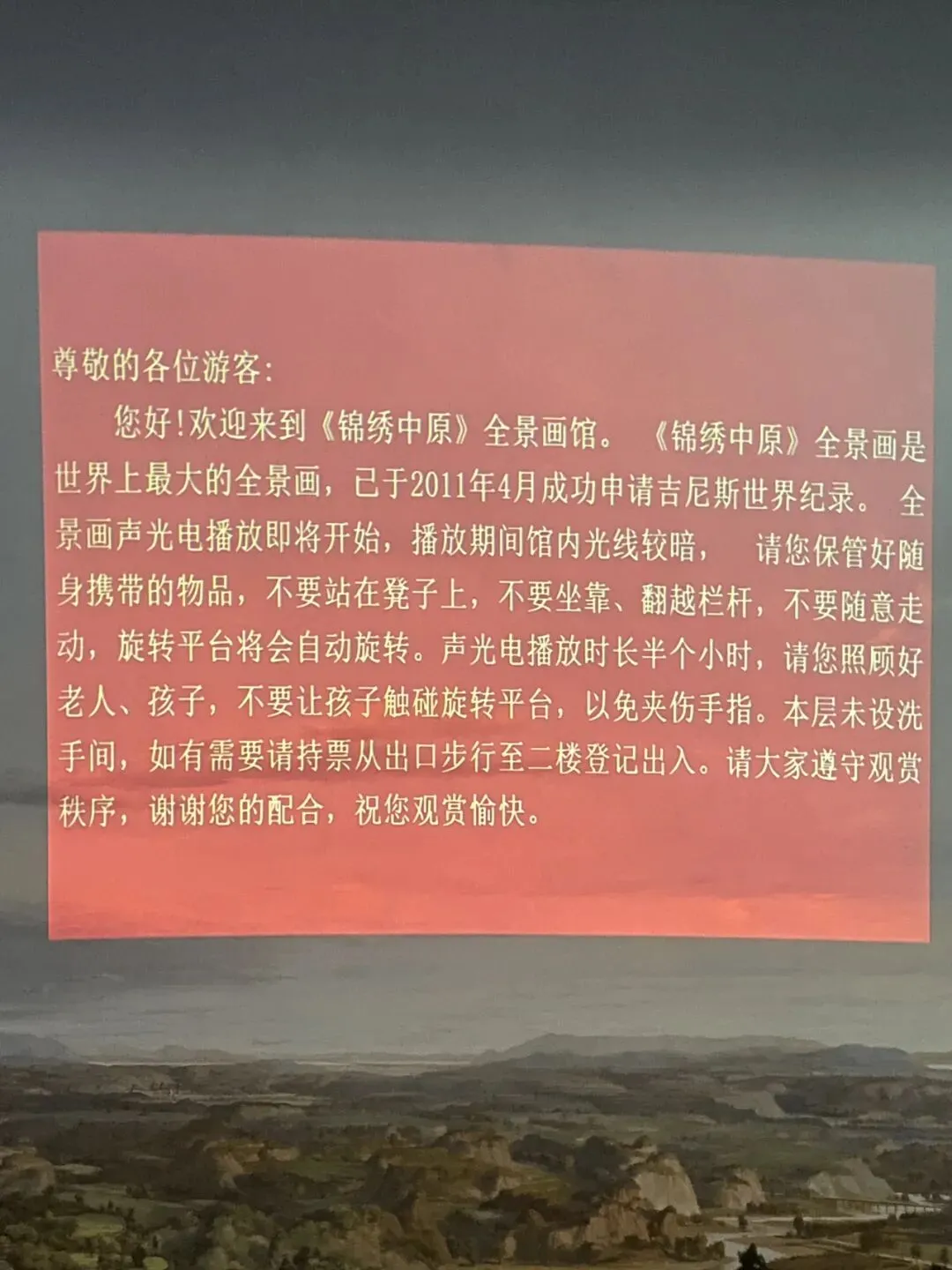 福塔四楼的锦绣中原200米全景画,由鲁迅美术学院13位国内知名画家历时五年精心创作而成,360度巨幕,是颜料、画布、和园林艺术的结合,灯光一暗,科技和绘画的完美结合,让画面活起来了,30分钟看遍河南,可谓会动的河南地图!中原福塔的宣传词就是:河南旅行第一站!有道理!我们凭郑开年票免费游览,这不就格外香了!