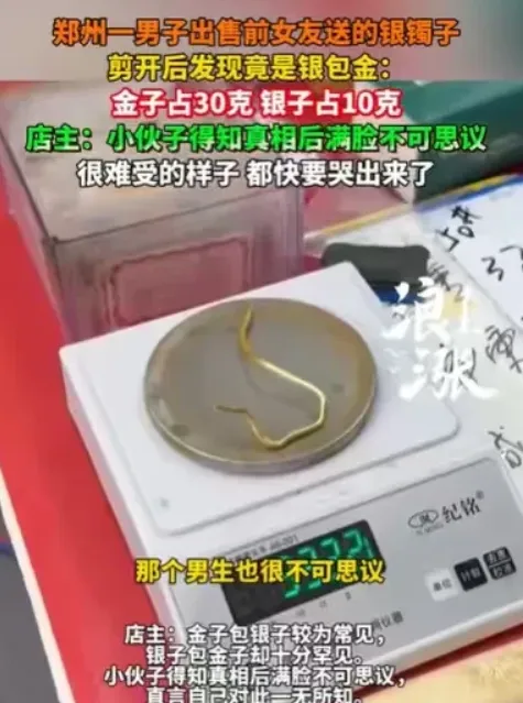 最近这个“银手镯剪开竟然有黄金”的瓜真的把我刷屏了,我当时一边吃饭一边看,结果筷子都停了两秒:河南郑州那个男生缺钱去卖前女友送的银手镯,店员一剪开,里面居然是金包银那种结构,金含量30克、银含量10克……他整个人直接震惊到怀疑人生,弹幕都在刷“这就是真爱呀!”“丢了一生的好运”。