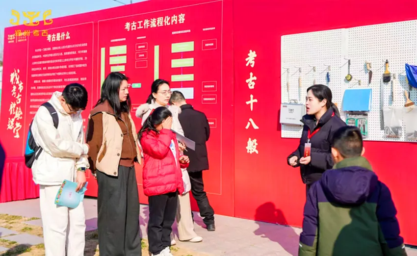 2月17日,大年初一,郑州商都书院街“城市考古体验课堂”开课。其中,“新春寻‘宝’”活动引领观众在考古工地探寻文物的“剪纸版”图案,在边玩边学中增添一份节日的喜庆。