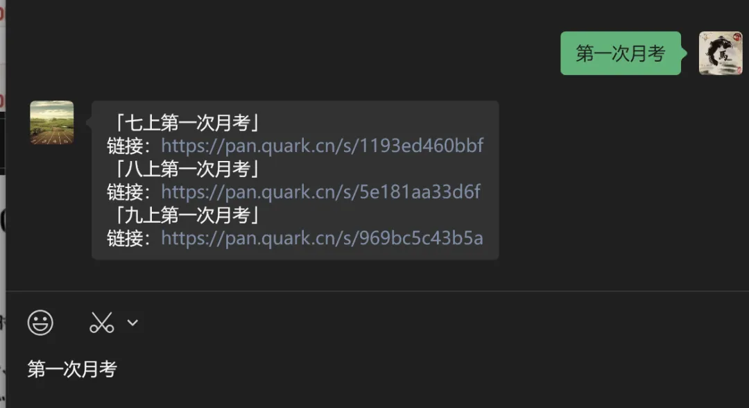 ③ 公众号聊天界面,发消息“2025中考真题”即可获取全部中考真题试卷链接。