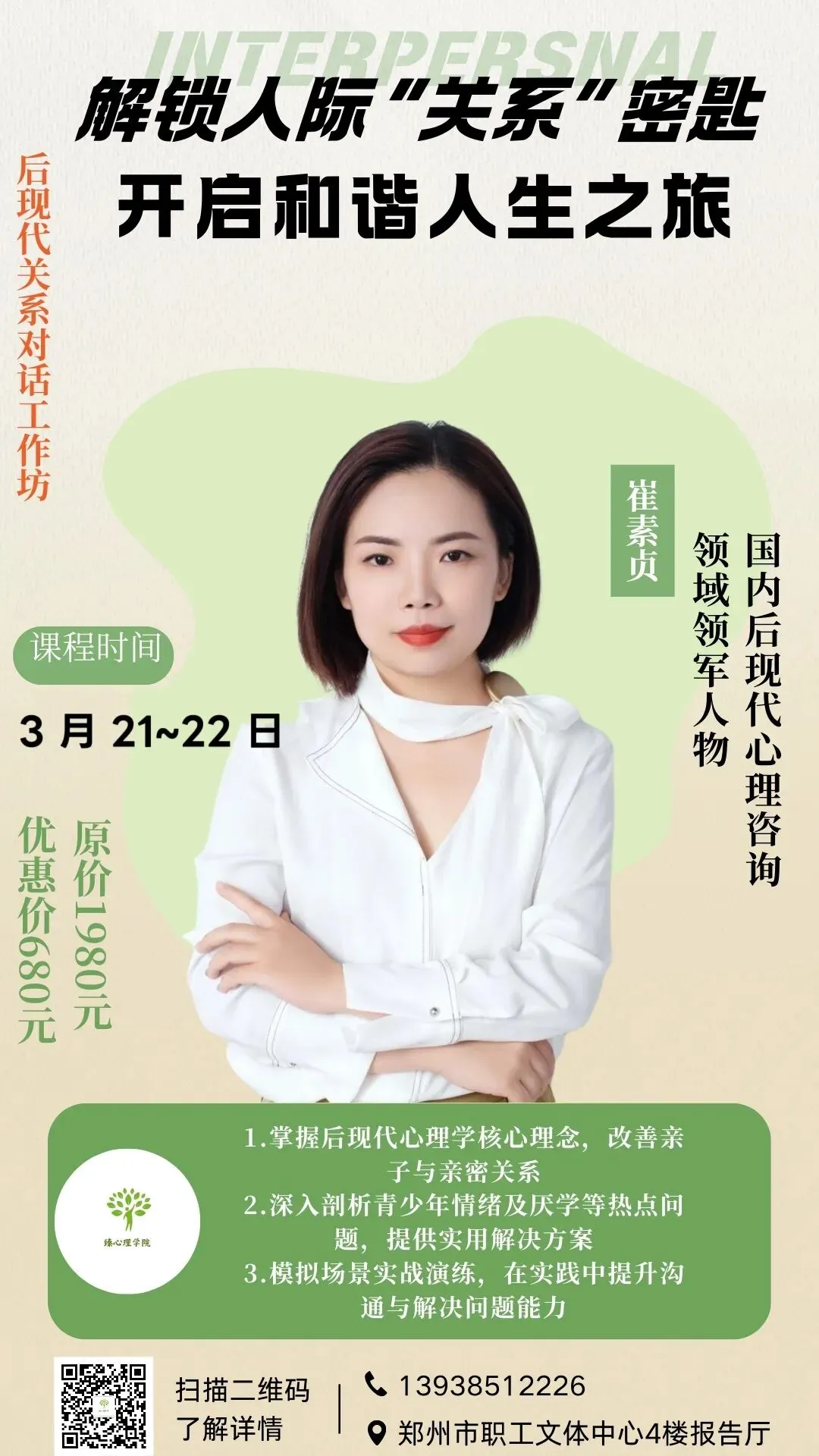 3.21-22日郑州站—崔素贞后现代关系对话工作坊(第三期)