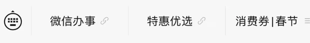 可以在下方菜单栏点击微信办事,特惠优选,消费券\春节获取你想看的内容: