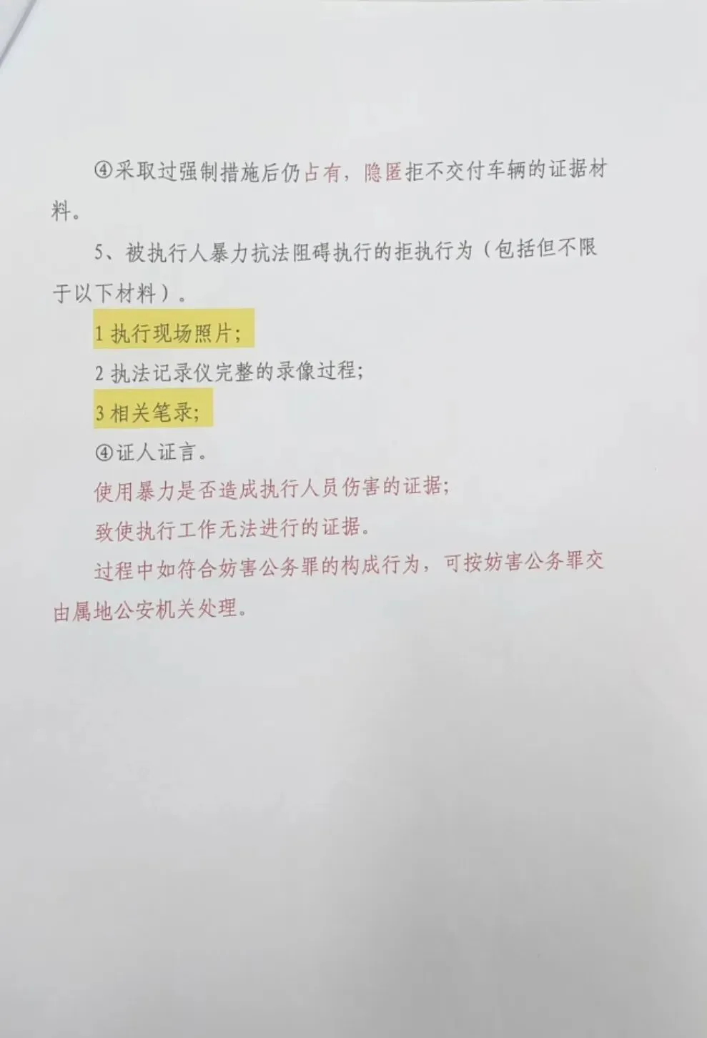 ④采取过强制措施后仍占有,隐匿拒不交付车辆的证据材料。