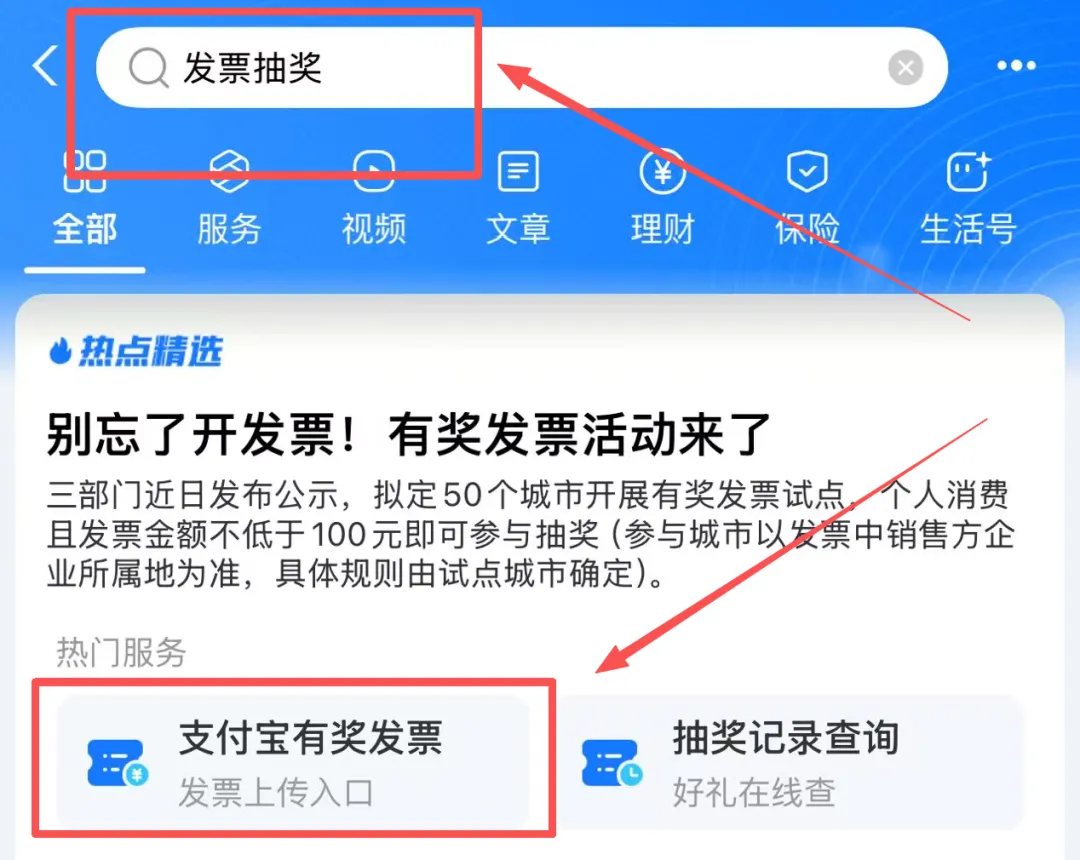 在主页搜索发票抽奖,即可获取入口