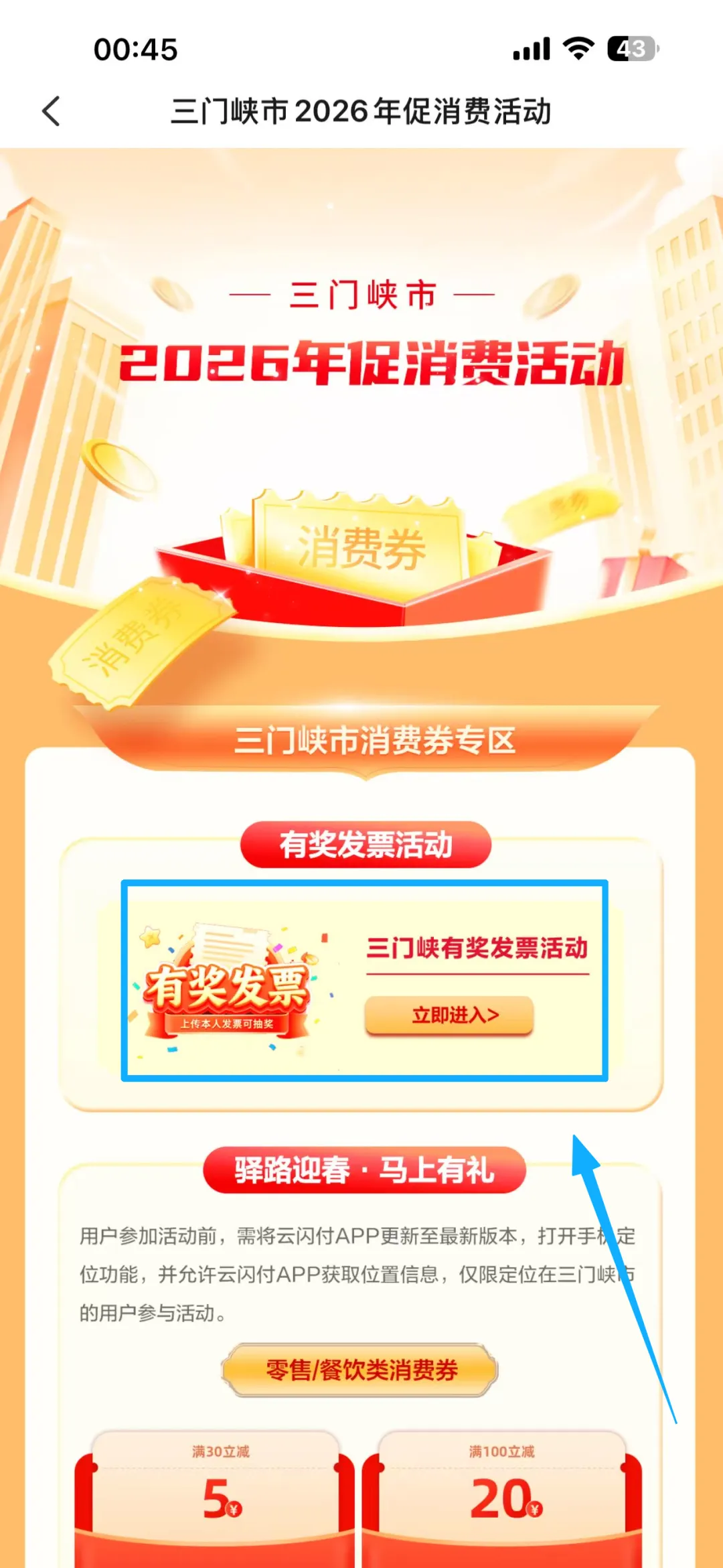 ✅参与流程:进入云闪付根据下述图示即可进入入口(注意云闪付地址要选择三门峡才可以进入界面)