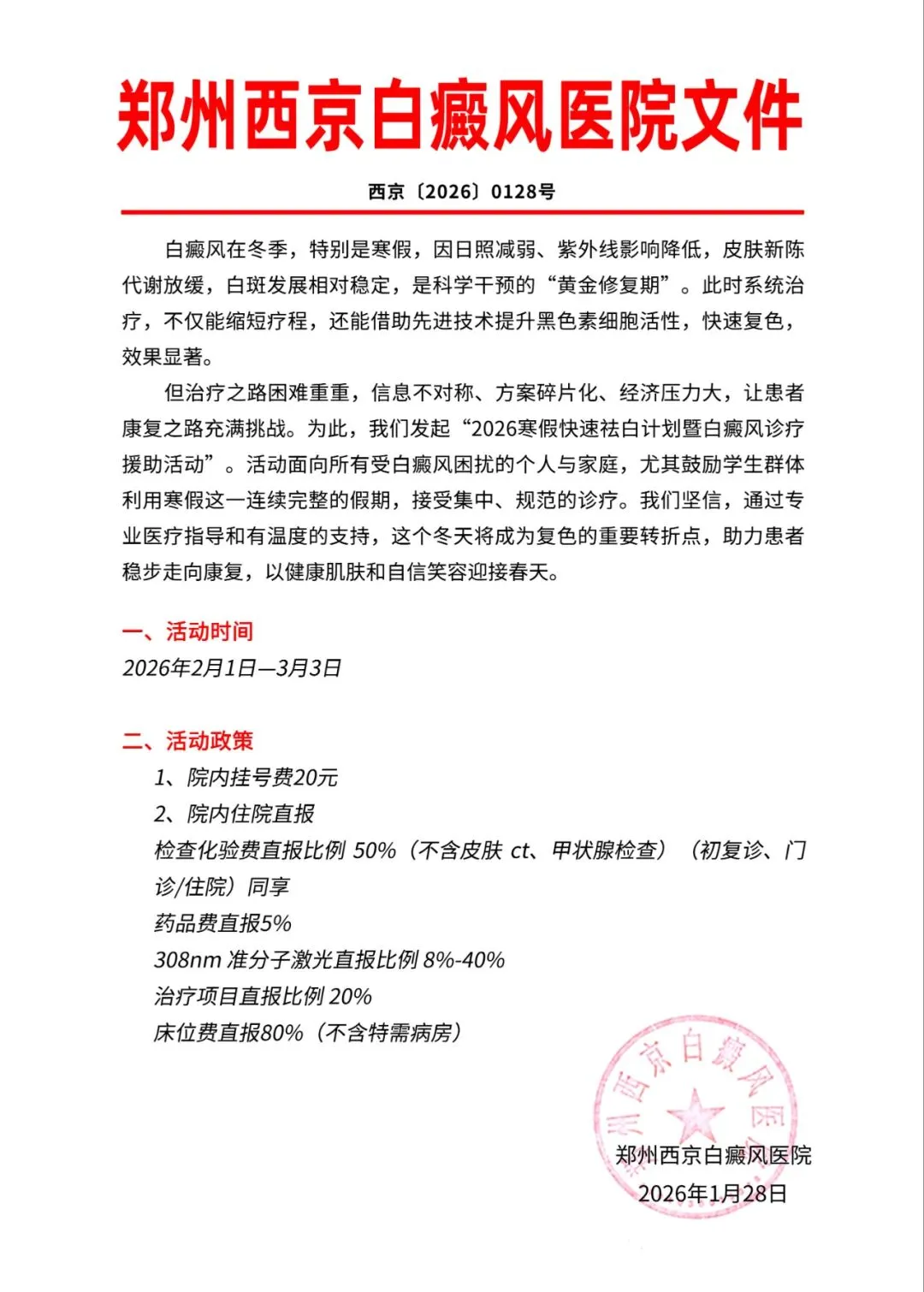 0371-88005788,公众号:郑州西京白癜风医院预约挂号郑州西京白癜风医院|2026年2月全月门诊安排通知(含春节),可在线预约!