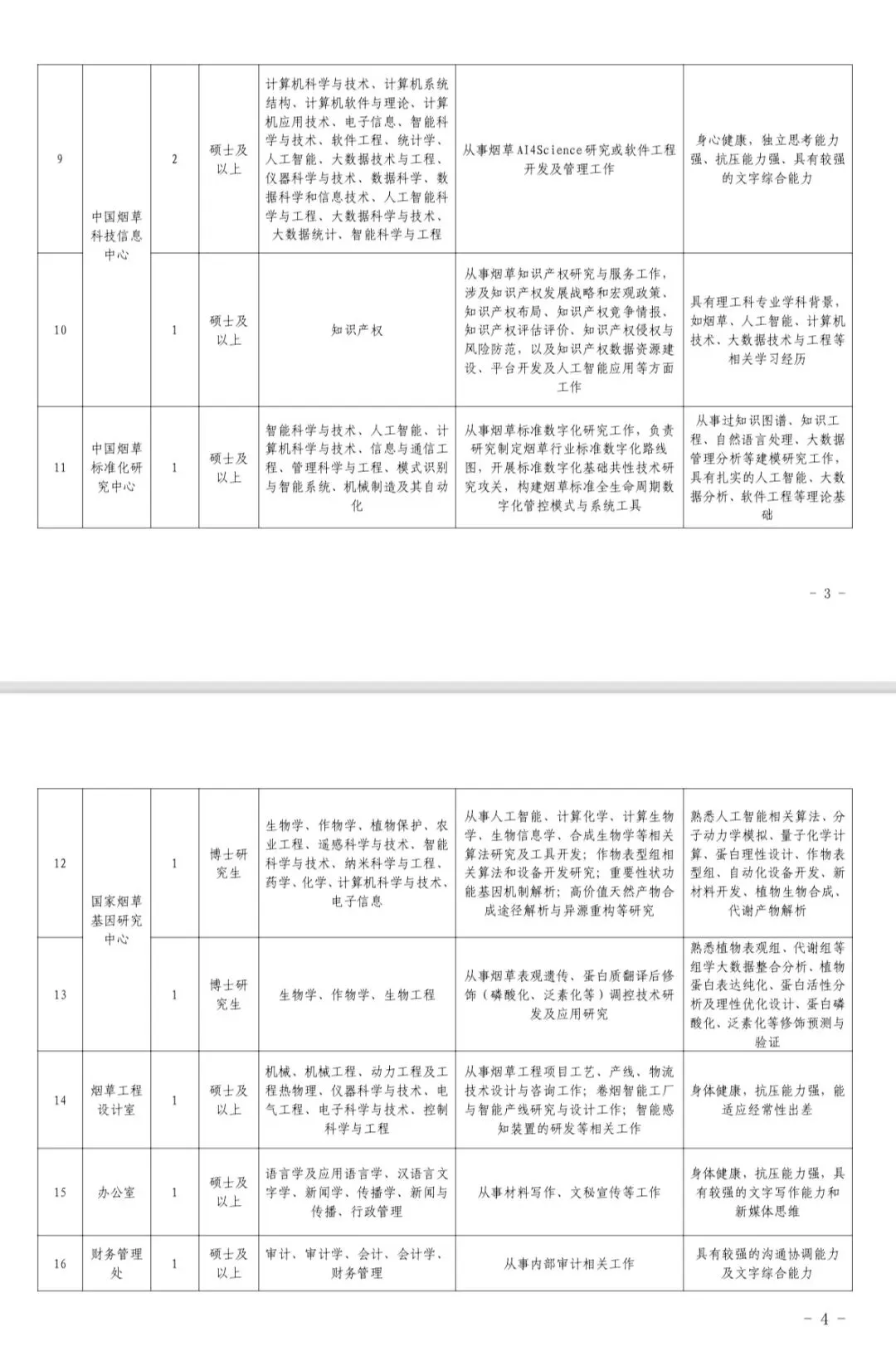 (四)本招聘信息由郑州烟草研究院负责解释。