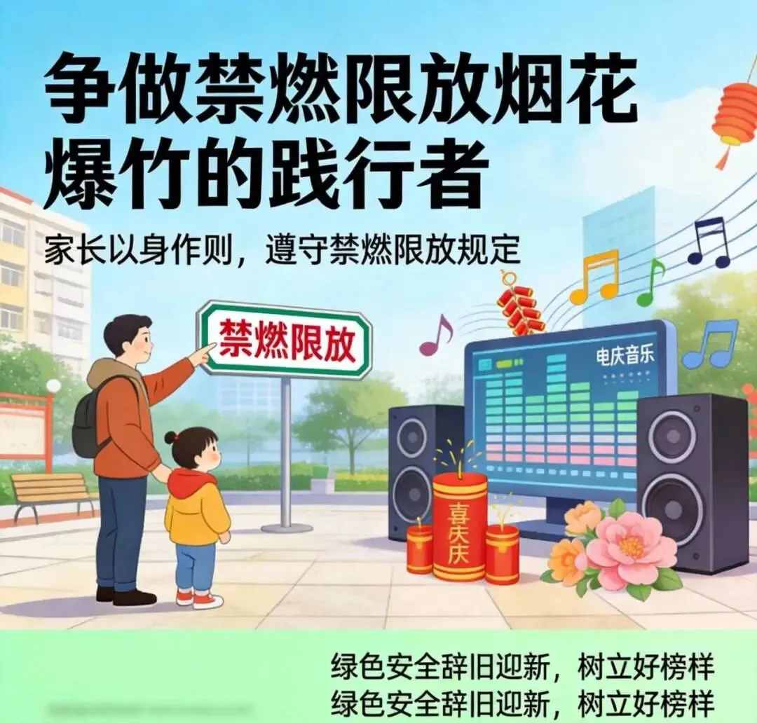 同时,告知孩子不要将鞭炮放入玻璃瓶、铁罐子等容器里,避免安全事故发生。