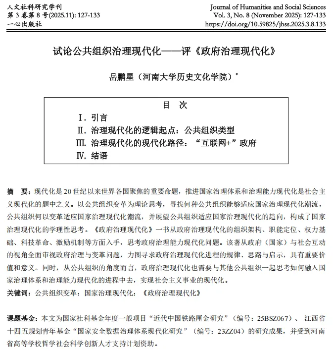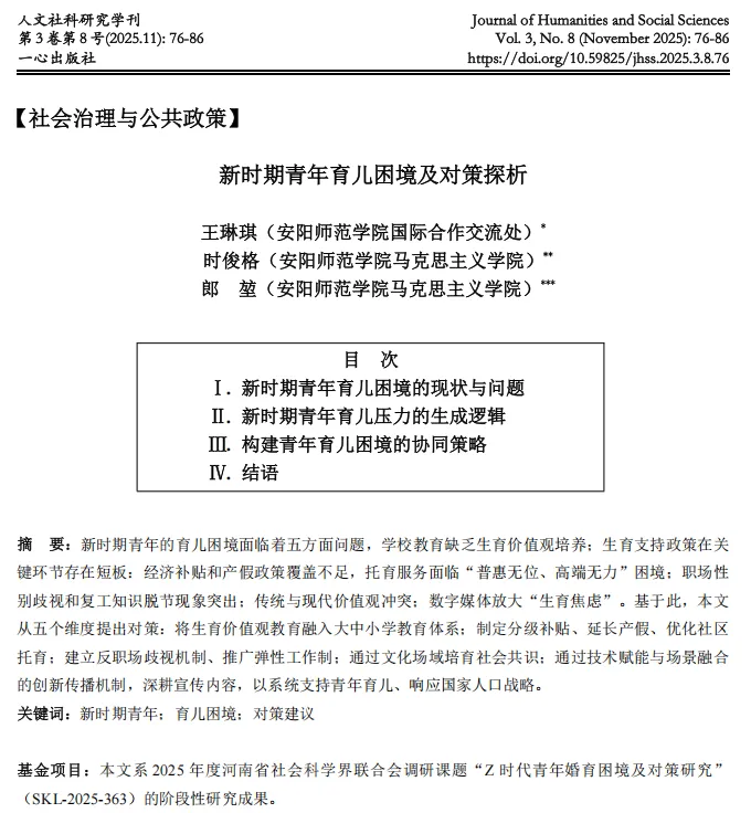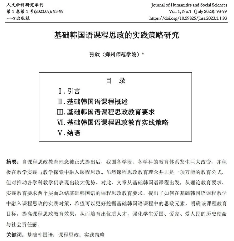 【投稿指南】一心出版社综合类学术月刊《人文社科研究学刊》(JHSS)征稿启事(jhss11@foxmail.com)