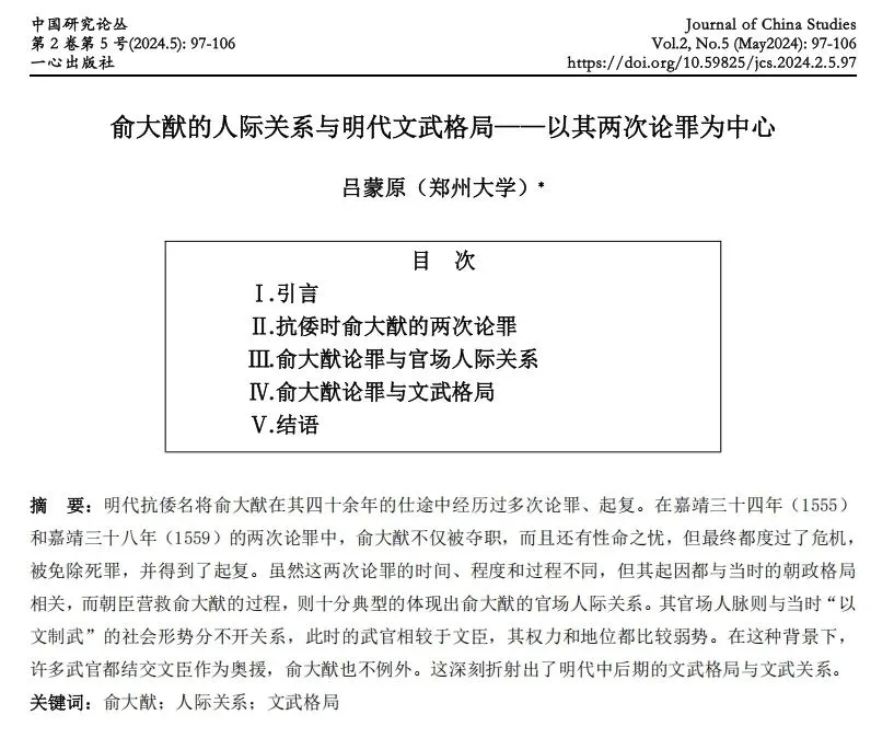 【投稿指南】一心出版社地域类综合学术月刊《中国研究论丛》(JCS)征稿启事(jcs11@foxmail.com)