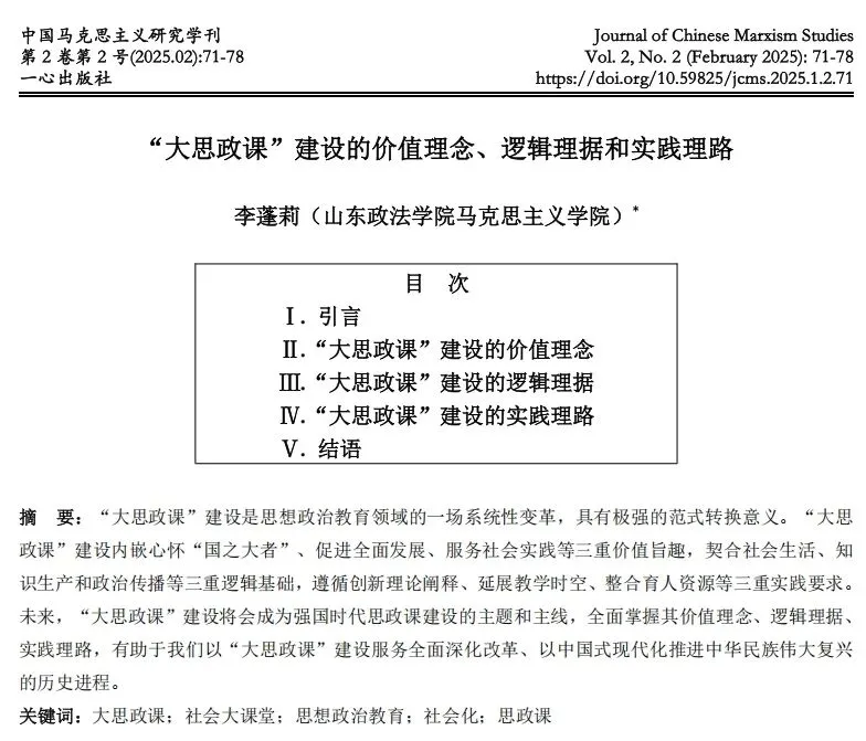 【投稿指南】一心出版社马理论综合性学术月刊《中国马克思主义研究学刊》(JCMS)征稿启事(jcms11@foxmail.com)