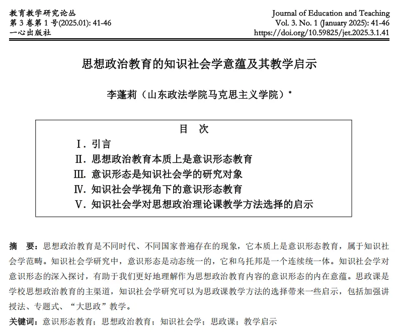 【投稿指南】一心出版社学教育类综合性术期刊《教育教学研究论丛》(JET)征稿启事
