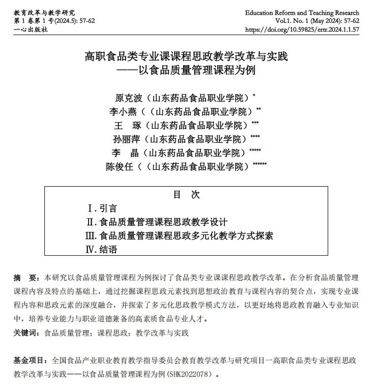 【投稿指南】一心出版社学教育类综合性术期刊《教育改革与教学研究》(ERTR)征稿启事
