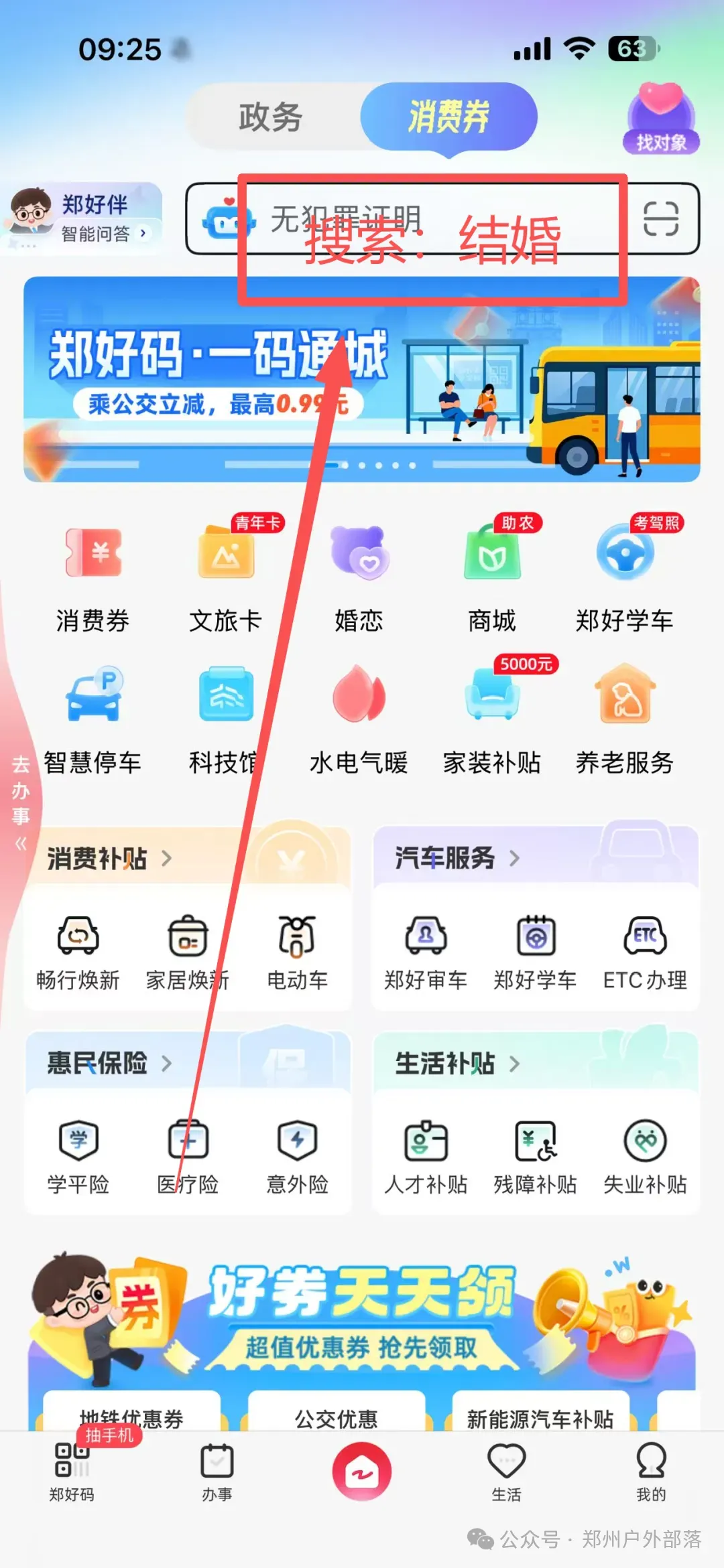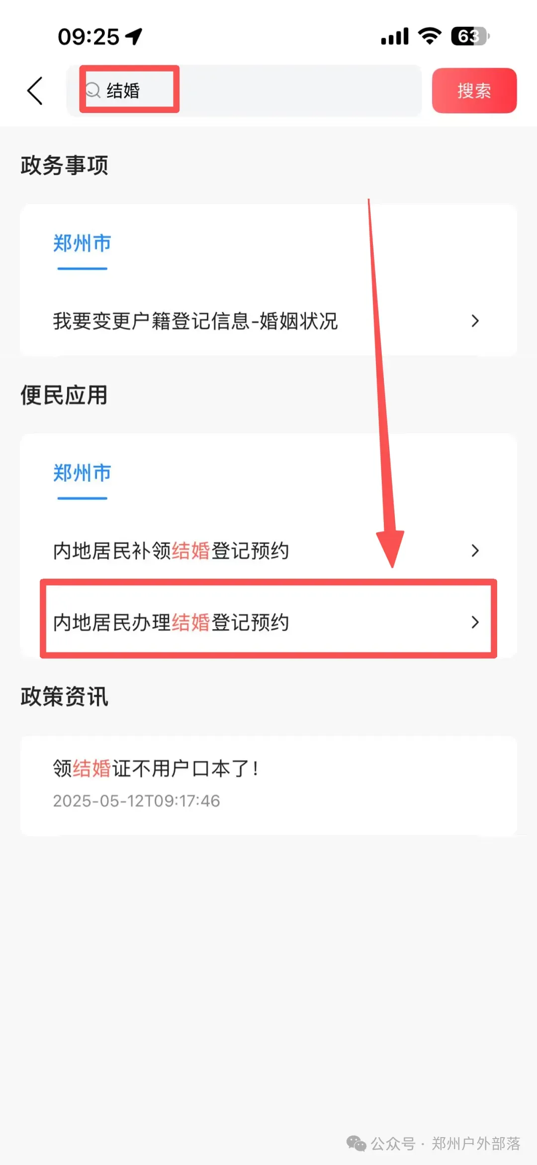 1️⃣打开郑好办app在搜索框输入【结婚】