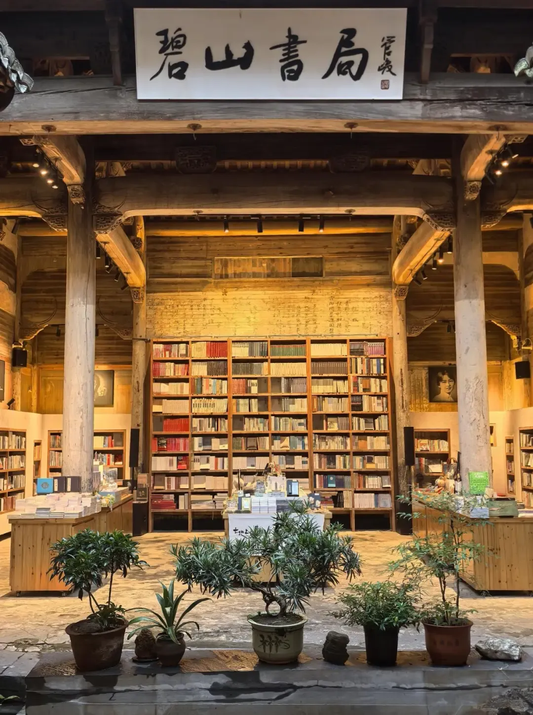 饭后散步,发现了这个宝藏——碧山书局。它藏在一个不起眼的巷子里,前身是碧山小学的启蒙学堂。推开厚重的木门,书香扑面而来。阳光透过天井洒在书页上,几只橘猫慵懒地趴在书架旁打盹。