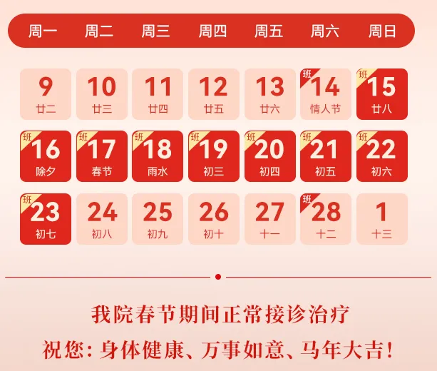 所以在这个春节,我们选择坚守岗位,不放假、照常接诊,用专业与责任,守护每一位患者的健康,用贴心与温暖,陪伴每一位患者度过一个安心、祥和的新春佳节。