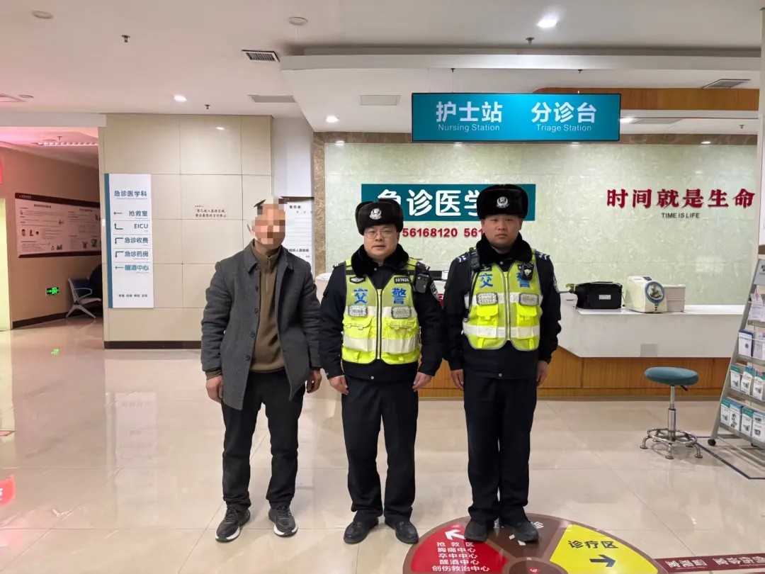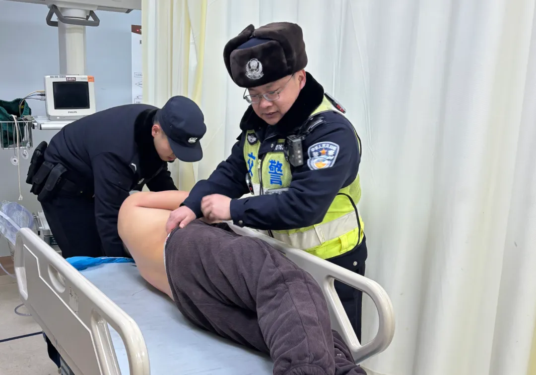 车辆快速驶离高速主线,抵达安全区域。本以为险情就此解除,不料醉酒男子情绪进一步激化,在挣扎过程中不慎导致自身受伤。见男子受伤,民警丝毫不敢懈怠,立即拨打120急救电话,同时全程守护在旁,安抚伤者及同行人员情绪,为急救人员到场处置争取宝贵时间。救护车抵达后,民警协助医护人员将醉酒男子抬上救护车。为确保伤者得到及时救治、同行人员安心,民警郜伟与董晨雨驱车跟随救护车一同前往医院,全程陪同协助办理就诊手续、照看年幼小女孩。