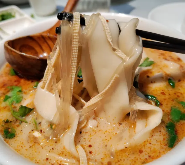 汤是灵魂,得用劈开的羊骨头,加上几颗本地的大红枣,慢火熬上一宿,熬到汤色如奶,不膻不腥。面片被师傅甩得啪啪响,下锅一滚,捞起来透着亮。碗里撒上香菜、豆腐丝,再搁两片鲜嫩的羊肉。喝一口汤,枣的甜味中和了羊肉的烈,暖流顺着喉咙下去,胃里瞬间就踏实了。