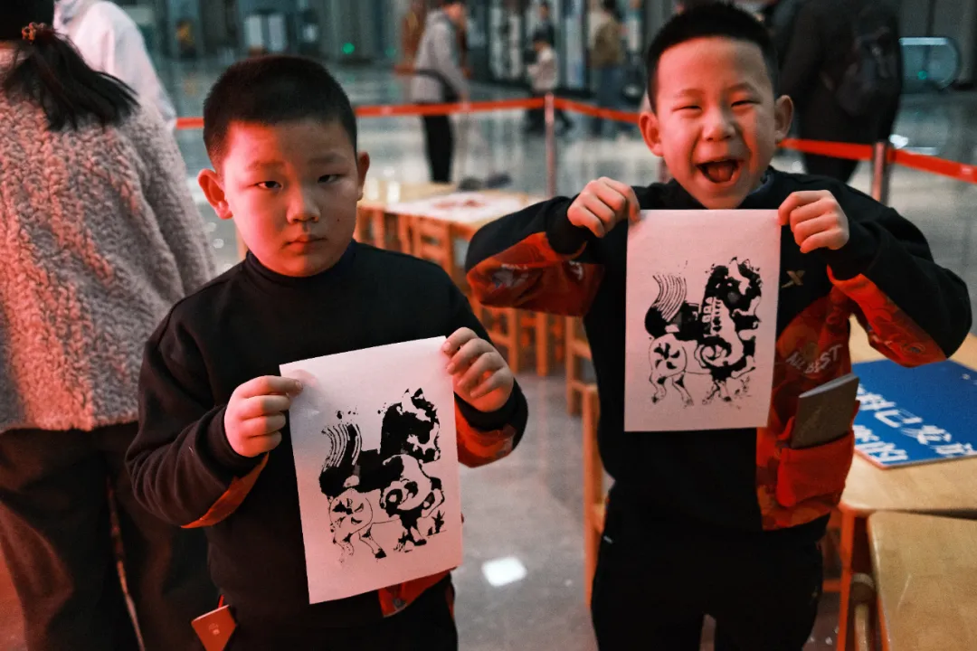 活动现场以“拓印里的时光记忆”为主题,将这一“化静为动”的非遗历史长卷徐徐展开。亲子家庭配合默契,家长研墨、孩子铺纸,当滚刷下的墨色渐显,亲手拓印的骏马完整揭取的瞬间,喜悦与成就感满满!