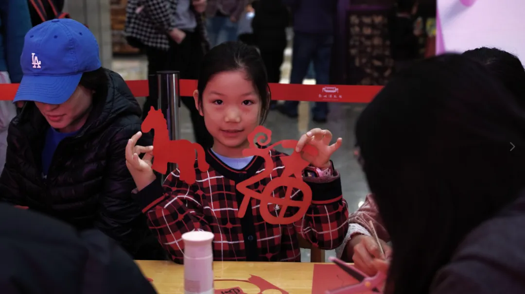 非遗年味·剪纸纳福。正月初四至初五,郑州博物馆“非遗里的年味手工坊”剪纸专场红火开场!趣味猜谜拉开帷幕,“马”主题剪纸令人眼前一亮——骏马奔腾藏进“福”字,灵动蹄花诉说吉祥,让观众直呼“太有年味了!”。