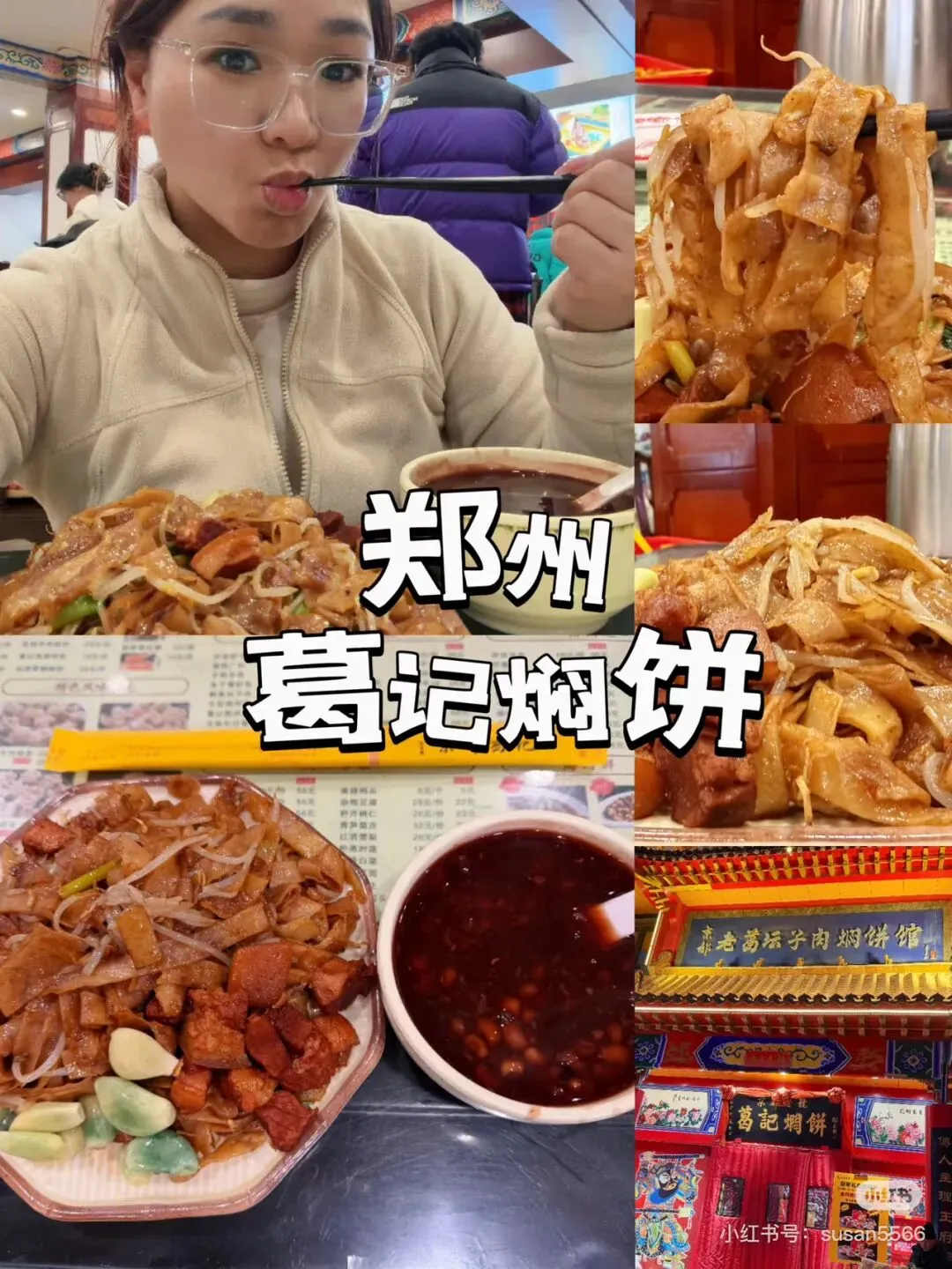 3️⃣葛记焖饼,郑州就是个碳水城市,主食量都是超大。闷饼介于炒饼跟泡饼之间的,地位不亚于烩面。但是整体满油的,坛子肉也是油乎乎,一定要配个红豆汤解腻。