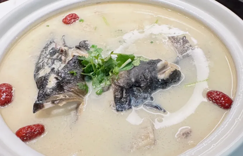 最值得一试的是南湾鱼头汤。不是那种饲料鱼的土腥味,是大水面养出来的鲜。做法讲究“千滚豆腐万滚鱼”,大铁锅,柴火灶,鱼头先煎两面黄,再加开水猛火炖。汤一喝,人就醒了,汤色奶白,肉嫩得不用嚼,顺着喉咙就滑下去了,胃里暖烘烘的。