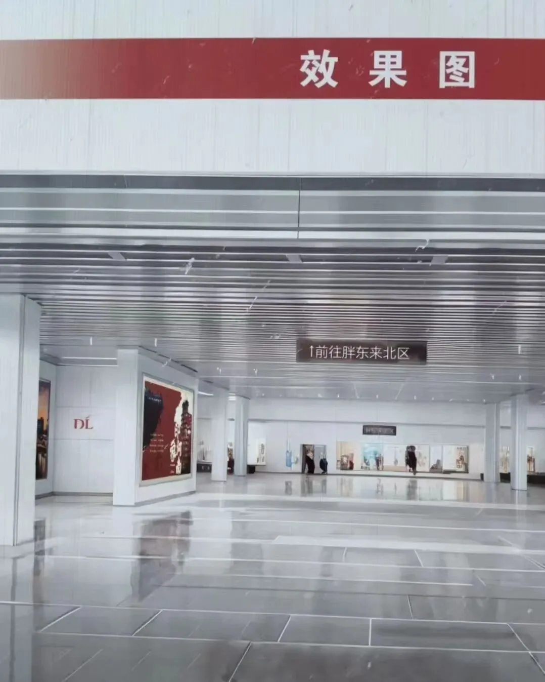 交通动线方面,胖东来主力区域、蜜雪冰城片区与高铁东站东广场之间,均规划设计下沉天井,顾客可从地面直接通过天井便捷往返超市、门店与高铁站,实现无缝衔接。