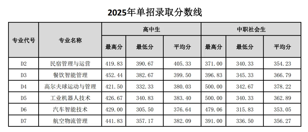 三、录取参考:2025年单招录取分数线参考
