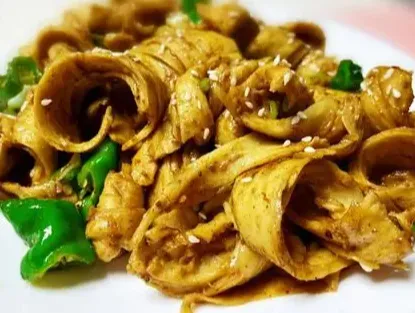 进店一看,好家伙,全是人!老板手脚麻利地切米皮,那刀工快得像残影。童记的米皮跟别处不一样,稍微厚一点,吃起来特别劲道,不容易断。最关键的是那勺秘制芝麻酱,不是那种稀汤寡水的,而是熬得浓浓的,裹在每一根米皮上。再浇上一勺红油辣子,撒点黄瓜丝、面筋块,拌匀了看着就红亮诱人。