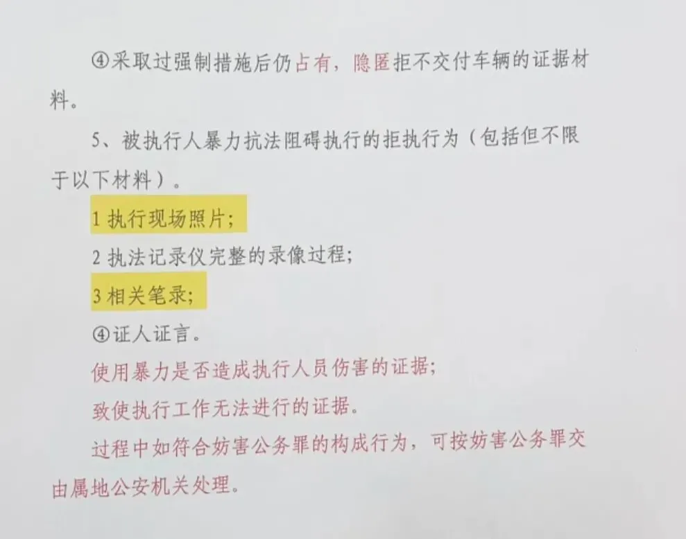 4、被执行人拒不交付车辆的拒执行为(包括但不限于以下材料)。
