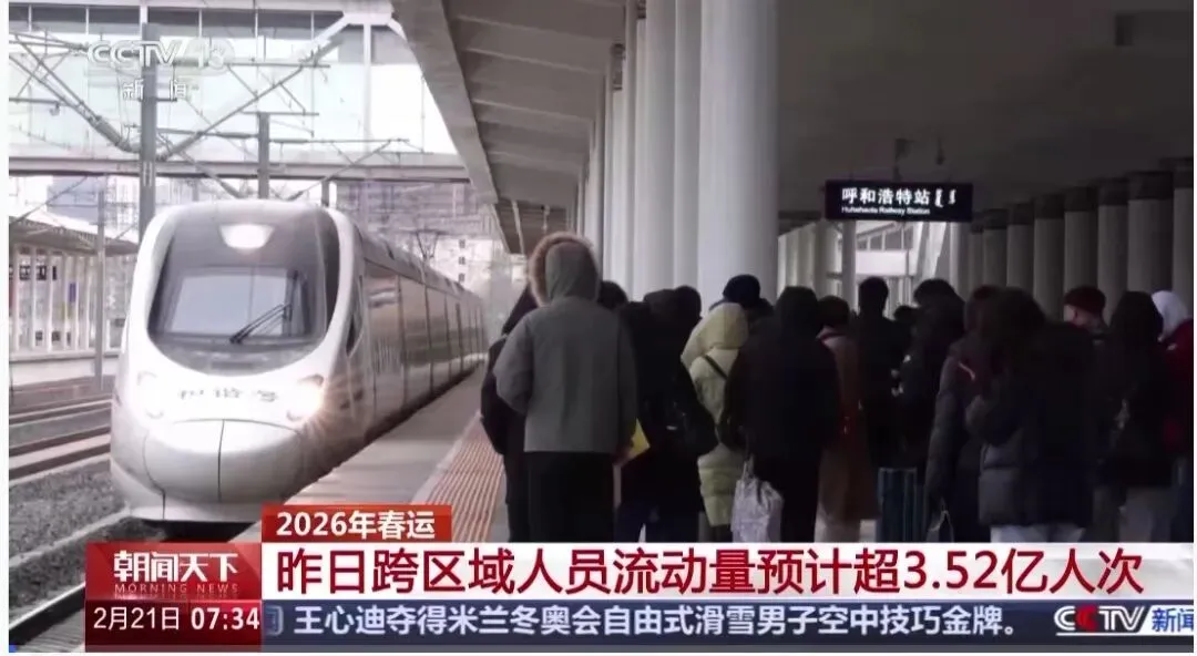 记者从交通运输部了解到,昨天全社会跨区域人员流动量预计超3.52亿人次,环比增长3.7%,比2025年同期增长12.0%。