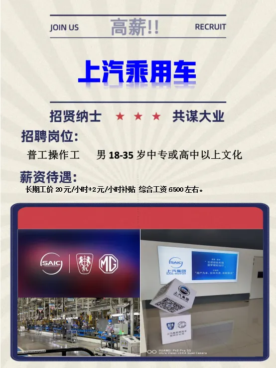 薪资待遇:长期工价20元/小时+2元/小时补贴(满二个月一次性补发2元/小时补贴)月综合工资6500左右。